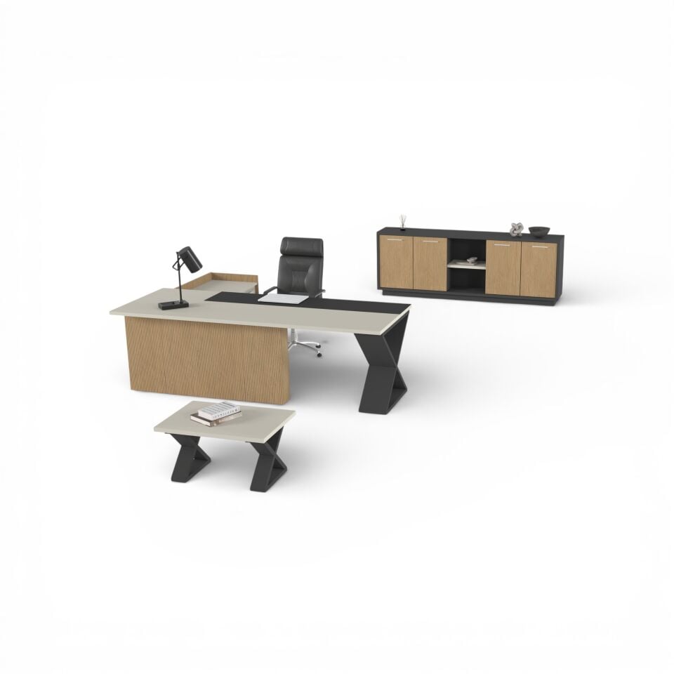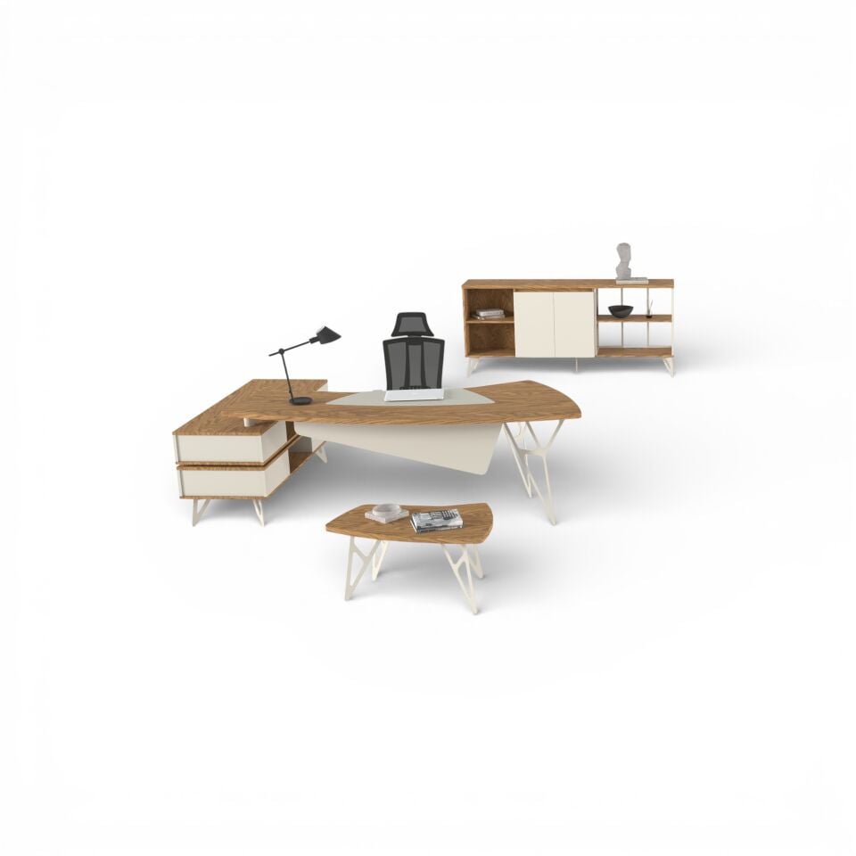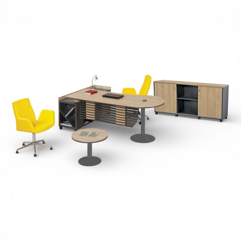 Fonksiyonel detaylarla zenginleştirilmiş ofis çözümleri, depolama alanları ve geniş kullanım yüzeyleri ile günlük iş akışını kolaylaştırır. Aynı zamanda modern tasarım çizgileri sayesinde ofisinizde güçlü bir ilk izlenim oluşturabilirsiniz.