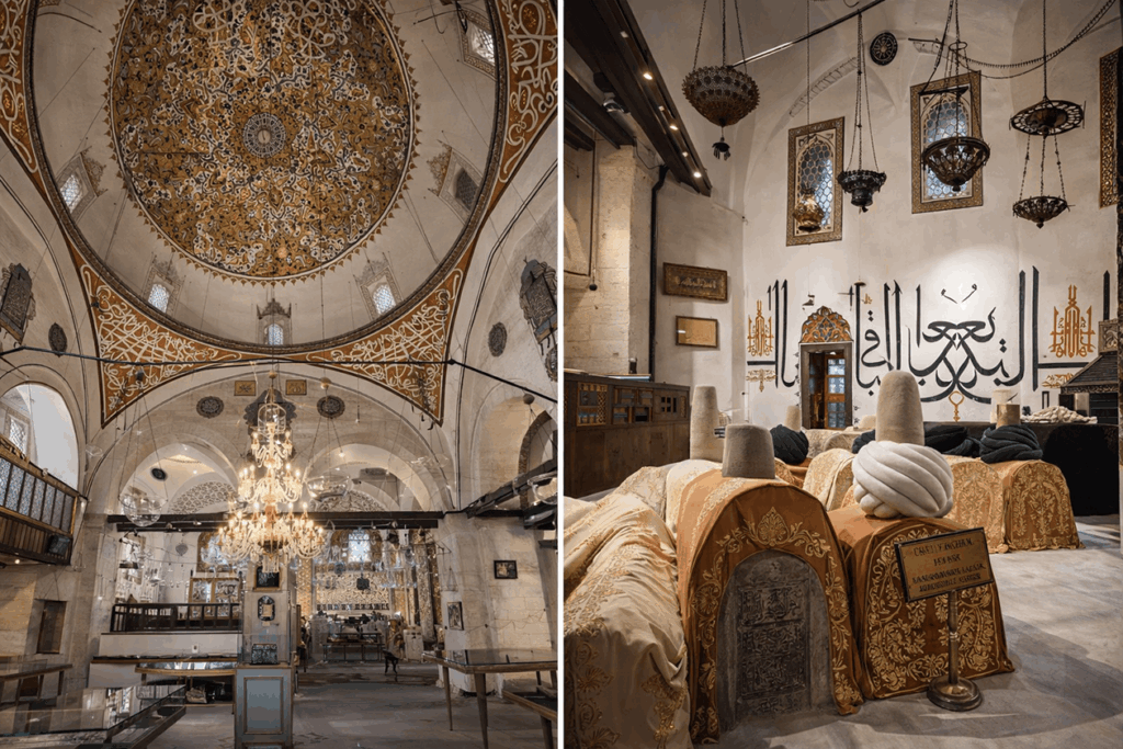 Mevlevî dervişlerinin sema yaptığı alan da müze içerisinde görülebilir.